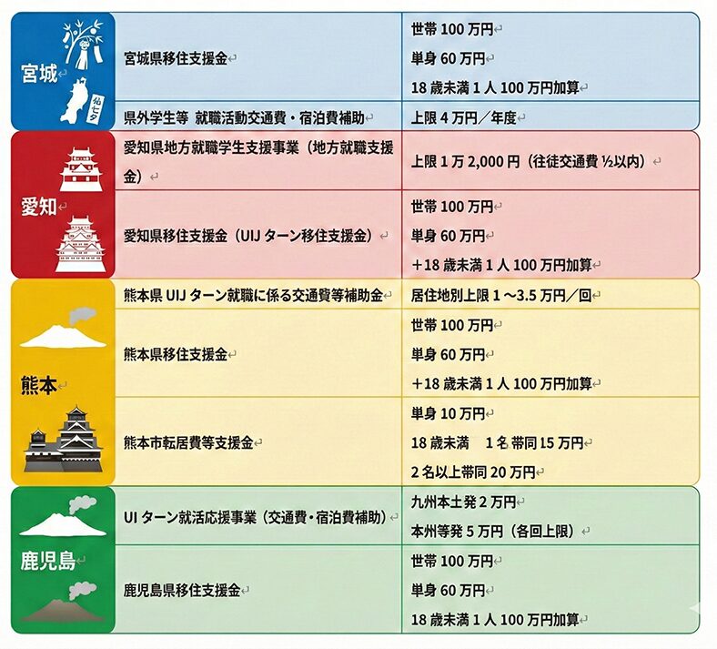 例えば、以下のような制度があるため、Uターン就職を考えている方は、地元の自治体HPを調べてみると、経済的な負担が減らせるかもしれません。